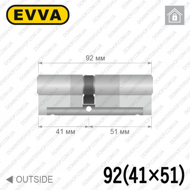 Цилиндр EVVA 4KS ключ-ключ, 92 мм (41х51), никель матовый
