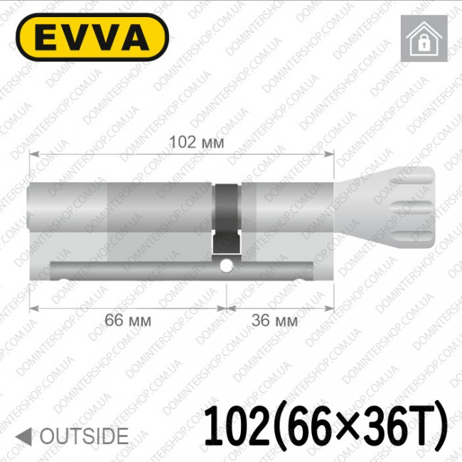 Купить цилиндр EVVA 4KS ключ-тумблер, 102 мм (66х36), никель матовый в интернет-магазине