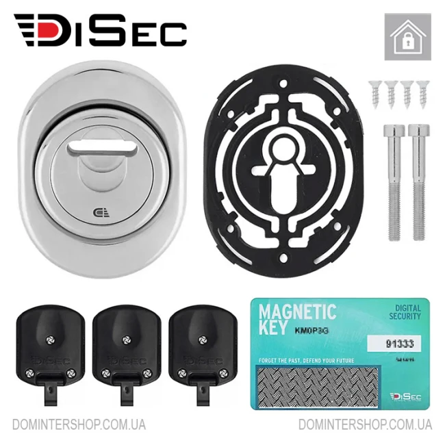 Магнитная броненакладка DiSec 3GDM предназначена для механического противодействия интеллектуальному и силовому взлому сувальдного замка посредством перекрытия ключевой скважины. Цена ее высока, но вы получите защиту от всех видов взлома, а стоимость броненакладки будет однозначно ниже, чем цена высококлассного замка и обычной защитной фурнитуры. Если у вас замок или цилиндр не имеют высокой секретности, то предлагаемая магнитная фурнитура может повысить ее, если же замок хороший, то вы получите дополнительную защиту не только от взлома, но и от всяческих «шалостей» — забивания в ключевой канал пластилина или мусора, заливания клея и подобных действий.