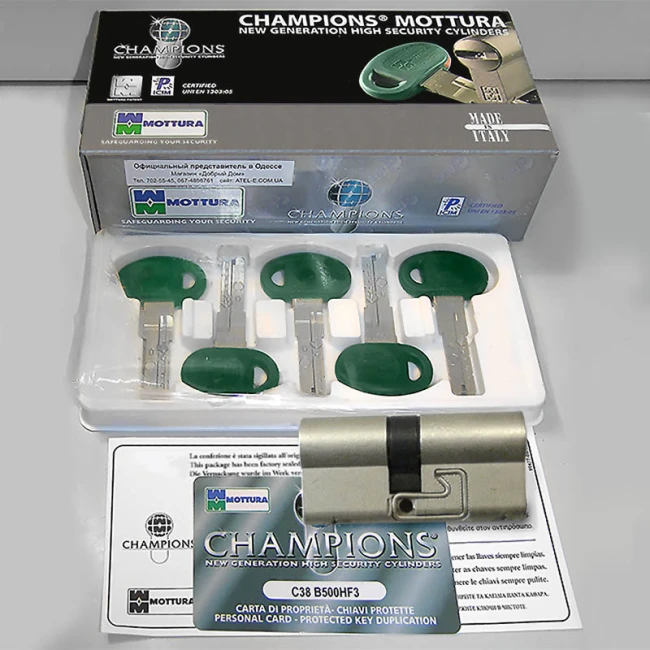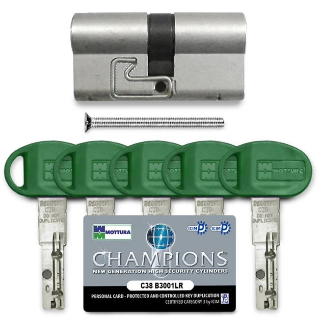Цилиндр Champions C38 от фабрики Mottura (Италия) относится к топовым личинкам производителя. Модель постепенно вытесняется новыми разработками компании, в которых используются упрощенные и более дешевые решения. C38 без всяких натяжек можно назвать отличным механизмом — он обеспечивает высокий уровень противостояния интеллектуальному вскрытию (его используют во входных дверях топового сегмента), уровень защиты от силовых методик взлома сердцевин можно также можно назвать высоким.