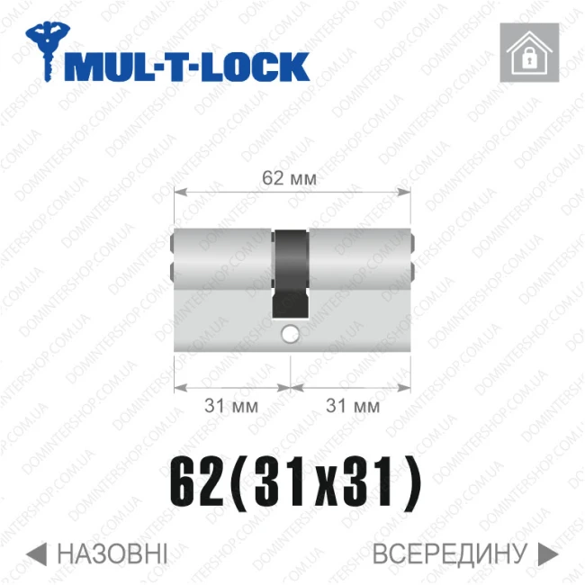 Купить цилиндр Mul-T-Lock MTL400 (ключ-ключ), 62(31/31), никель матовый в интернет-магазине