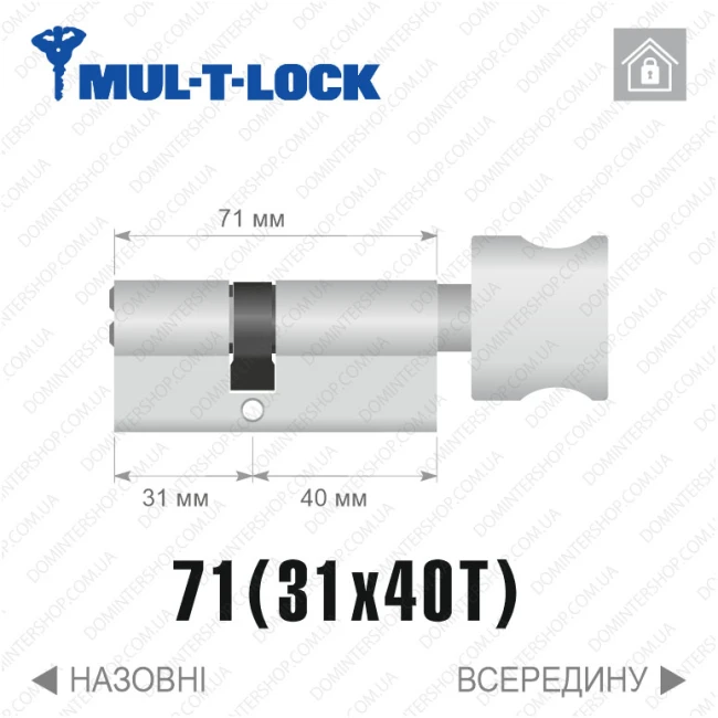 Купить цилиндр Mul-T-Lock MTL400 з вертушкой (барашком), 71(31/40), никель матовый в интернет-магазине