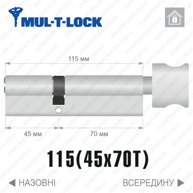 Купить цилиндр Mul-T-Lock MTL600 з вертушкой (барашком), 115(45/70), латунь полированная в интернет-магазине