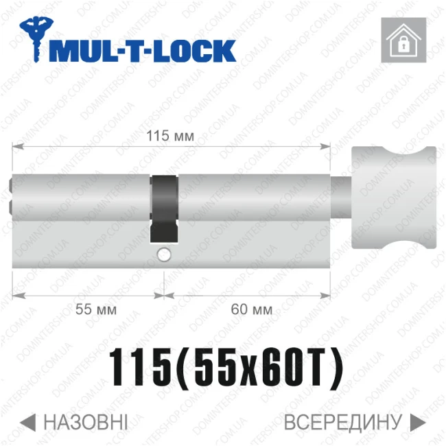 Купить цилиндр Mul-T-Lock MTL600 з вертушкой (барашком), 115(55/60), никель матовый в интернет-магазине