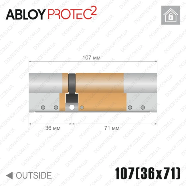 Купити циліндр Abloy Protec 2 CY322 ключ-ключ, 107 мм (36х71), латунь полірована в інтернет-магазині