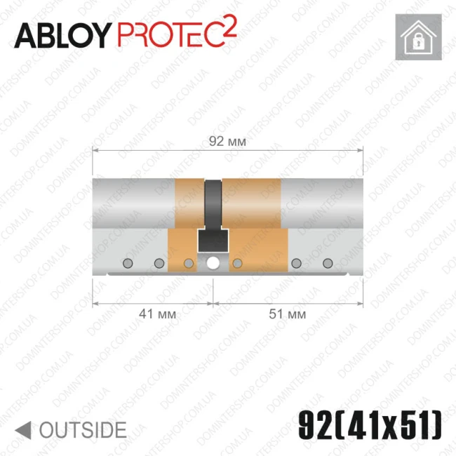 | Довжина та симетрія циліндра | 92 мм (41/51) |