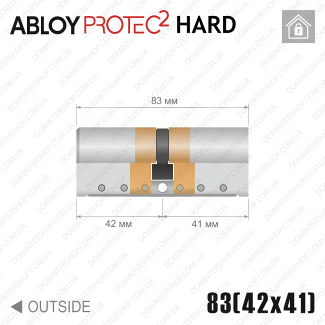 Циліндр Abloy Protec 2 Hard — один з найнадійніших і зламостійких механізмів серед всіх виробників. Серцевина по-справжньому безвідмовна, з дуже високим рівнем протистояння як інтелектуальному розкриттю, так і силовому зламу. Його відмінність від звичайних циліндрів Protec 2 полягає в загартованому торці зовнішнього боку корпусу.