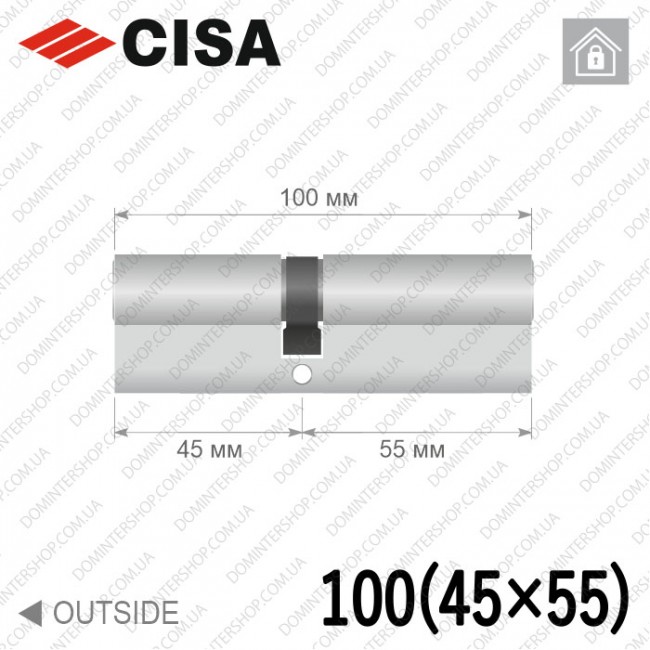 | Довжина та симетрія циліндра | 100 мм (45/55) |