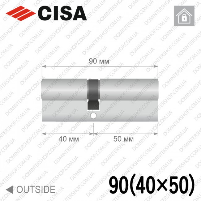 | Довжина та симетрія циліндра | 90 мм (40/50) |
