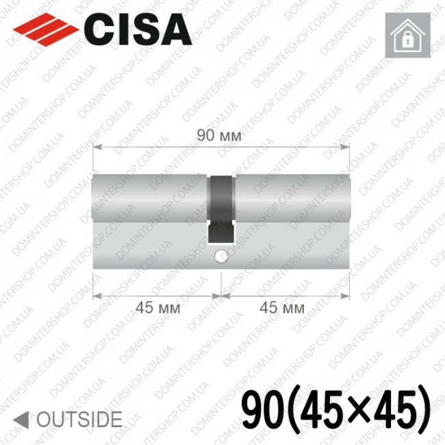 | Довжина та симетрія циліндра | 90 мм (45/45) |
