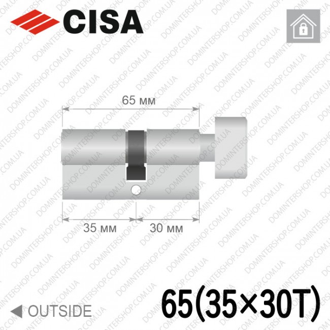 | Довжина та симетрія циліндра | 65 мм (35/30) |