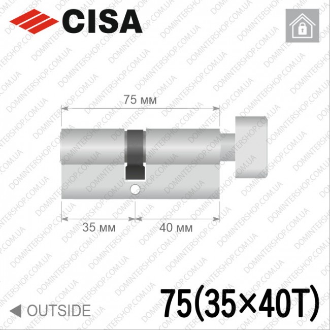 | Довжина та симетрія циліндра | 75 мм (35/40) |