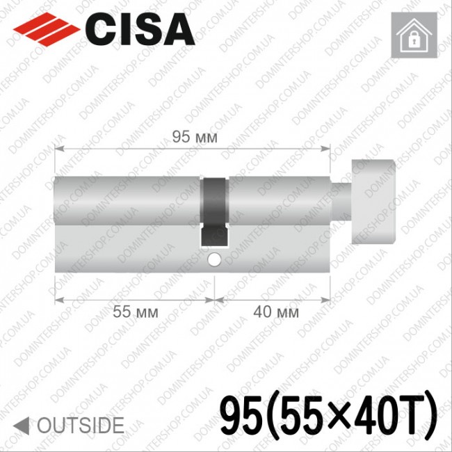 | Довжина та симетрія циліндра | 95 мм (55/40) |