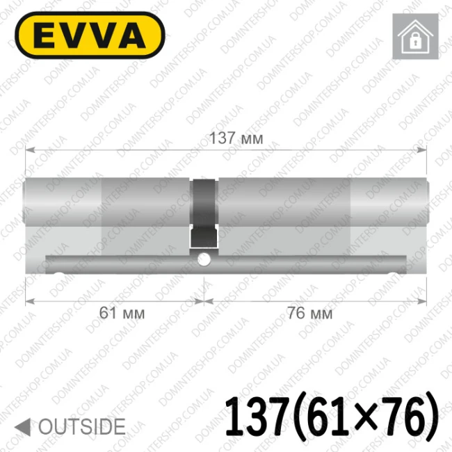 Купити циліндр EVVA 4KS ключ-ключ, 137 мм (61х76), латунь полірована, п'ять ключів в інтернет-магазині