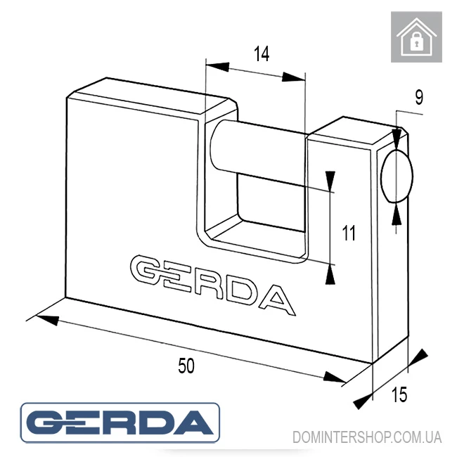 Навісний замок Gerda KMT 50 виготовляється у Польщі. Не можна не зазначити, що компанія відома насамперед своїми замками — незалежно від класу своєї продукції Gerda забезпечує відмінну якість виготовлення, завдяки якій замки працюють десятиріччями.