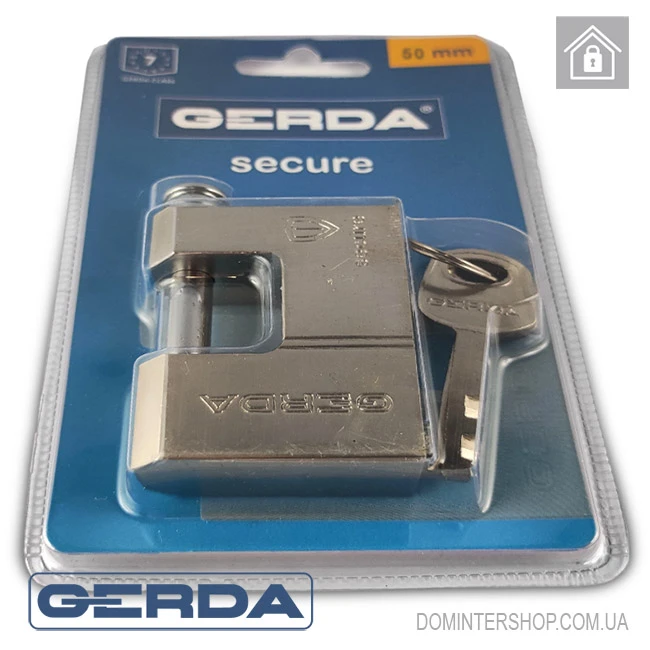 Навісний замок Gerda KSWT 50 виготовляється у Польщі. Не можна не зазначити, що компанія відома насамперед своїми замками — незалежно від класу своєї продукції Gerda забезпечує відмінну якість виготовлення, завдяки якій замки працюють десятиріччями.