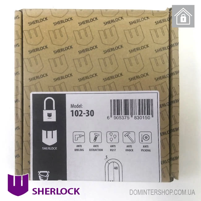 Навісний замок Шерлок 102-30 виготовляється у Китаї спеціально для українського однойменного бренду. Якість дуже висока — це навіть не так званий «заводський Китай», а вищий рівень — замки замовляються на китайському заводі, інженерам якого виставляються необхідні вимоги до виробу. Фактично це повторює європейську практику, знайому всім — навіть продукція відомих виробників світового рівня виготовляється в Китаї.