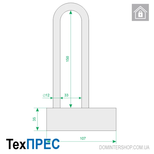 | Діаметр скоби | 12 мм |